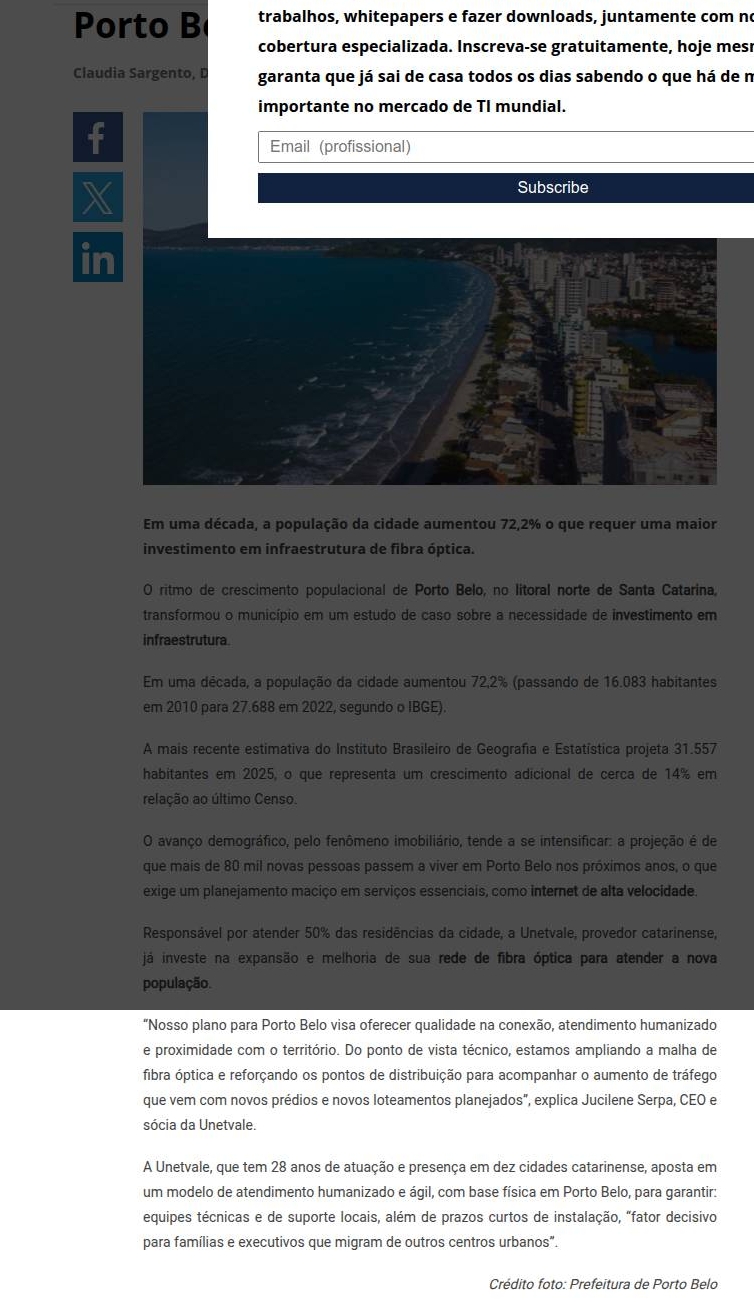 Porto Belo investe em fibra óptica